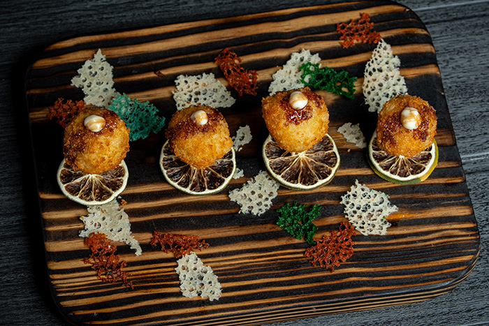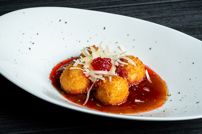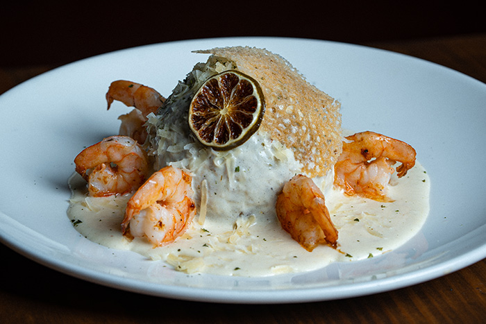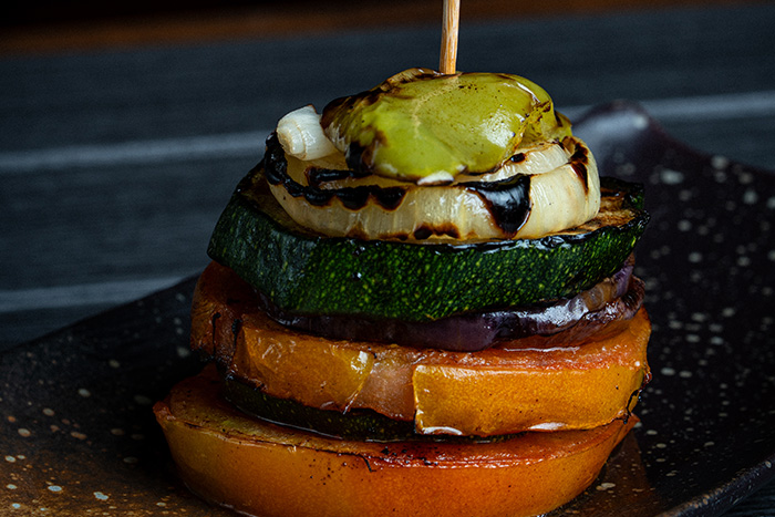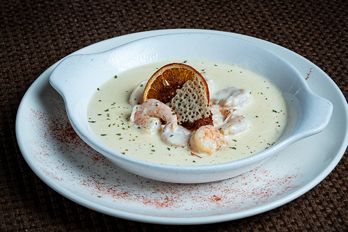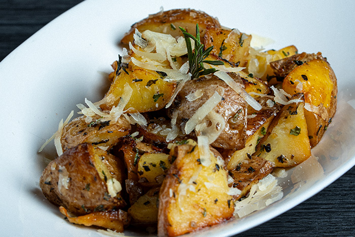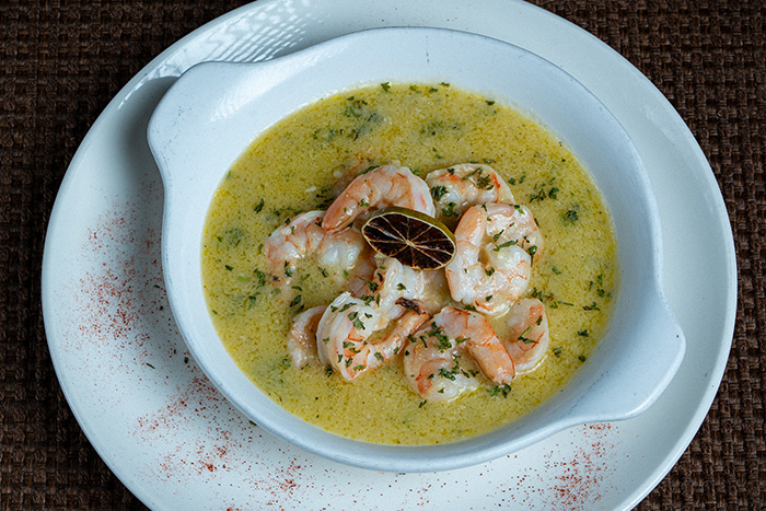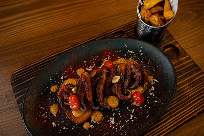Pulpo parrillero con finas hierbas y salsa de morrón, Guarnición de su preferencia.