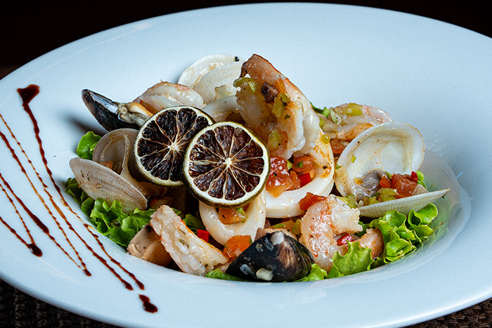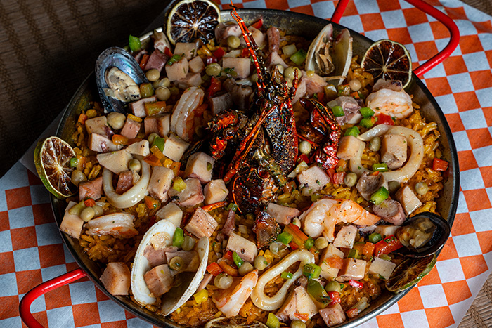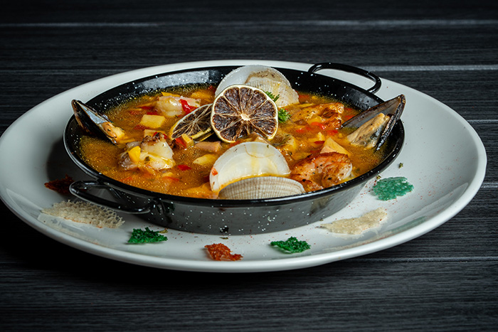 Pulpo, camarones, calamar, mejillones, almejas, filete de cerdo, chuleta, pechuga, alitas, 2 chorizos, + 2 guarniciones a elegir.
