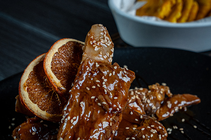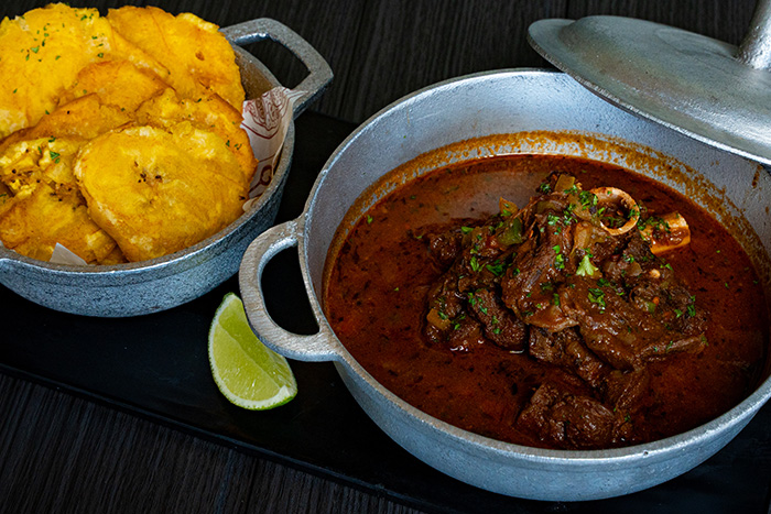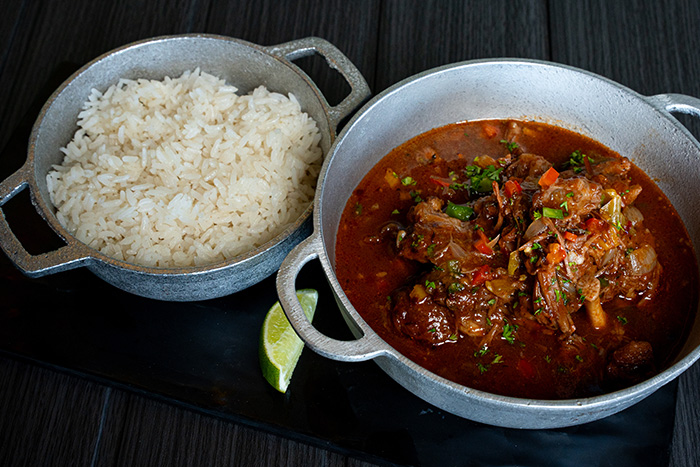 Rabo de res criollo pimentado Guarnición de su preferencia.