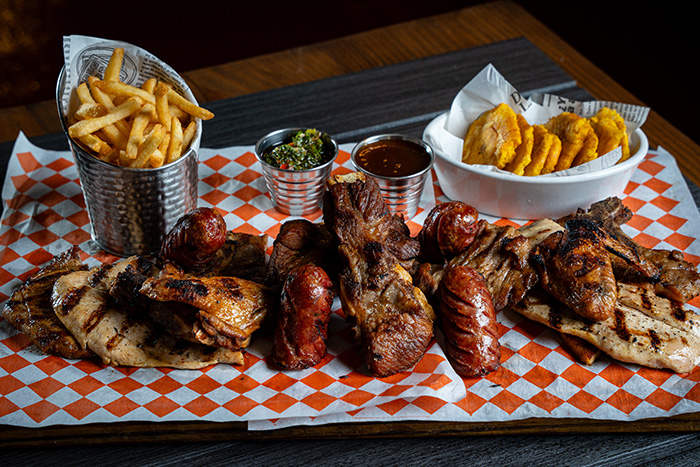 Chuleta, costillitas, pechuga, alitas, chorizos + 6 guarniciones a elegir.