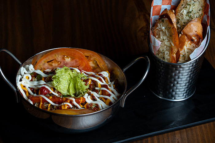Carne de res, queso manchego, jitomate, cebolla, lechuga y aderezo.