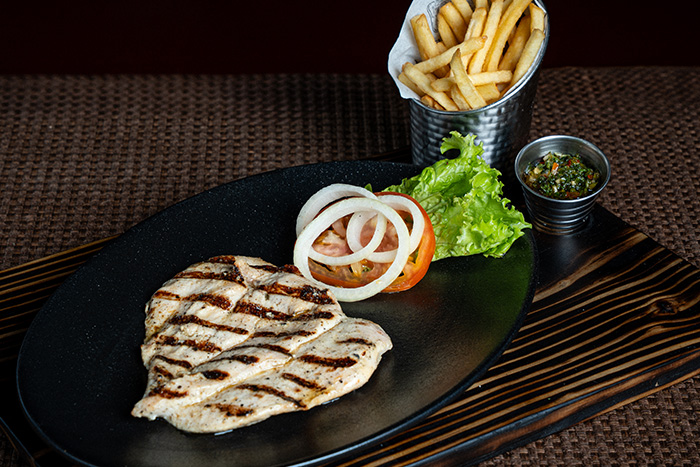Chuleta, costillitas, pechuga, alitas, chorizos + 2 guarniciones a elegir.